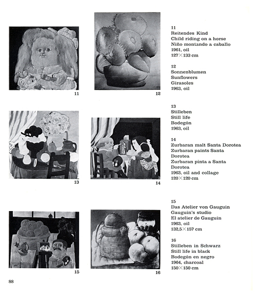Erste Botero-Monographie (gebunden in weißem Leinen) und als Katalog (Broschur) zur Botero-Ausstellung: Staatliche Kunsthalle Baden-Baden, Haus am Waldsee, Berlin, Kunsthalle Düsseldorf, Kunstverein Hamburg, Kunsthalle Bielefeld. Beide Ausgaben sind vergriffen.